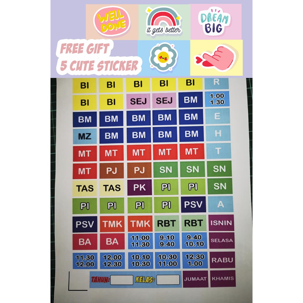 Sticker Jadual Waktu Sekolah Rendah Menengah Sticker Subjek Sticker Nama Sticker Label Shopee Malaysia