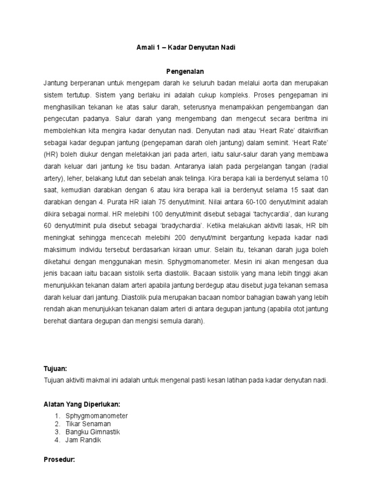 Amali Fisiologi Senam Kadar Denyutan Nadi