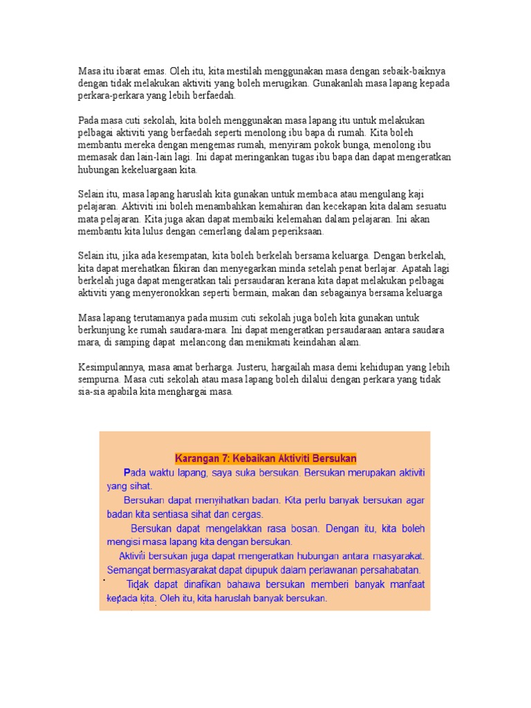 Laman Bahasa Melayu Spm Karangan Berpandu Bertajuk Aktiviti Aktiviti Yang Dapat Dilakukan Pada Masa Lapang