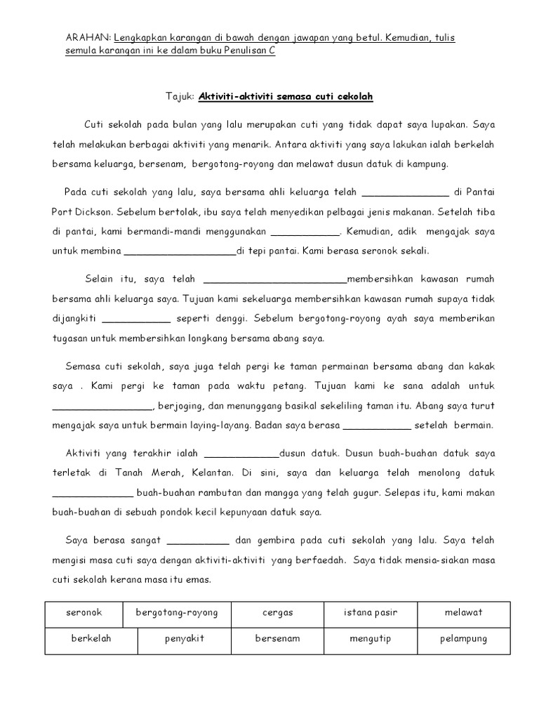 Karangan For Year 4 5 And 6 Facebook