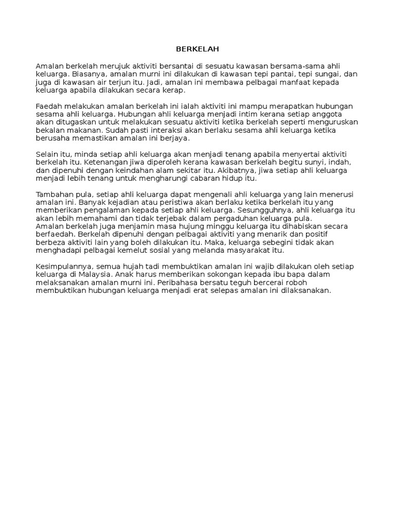 Karangan Pengalaman Berkelah Bersama Keluarga