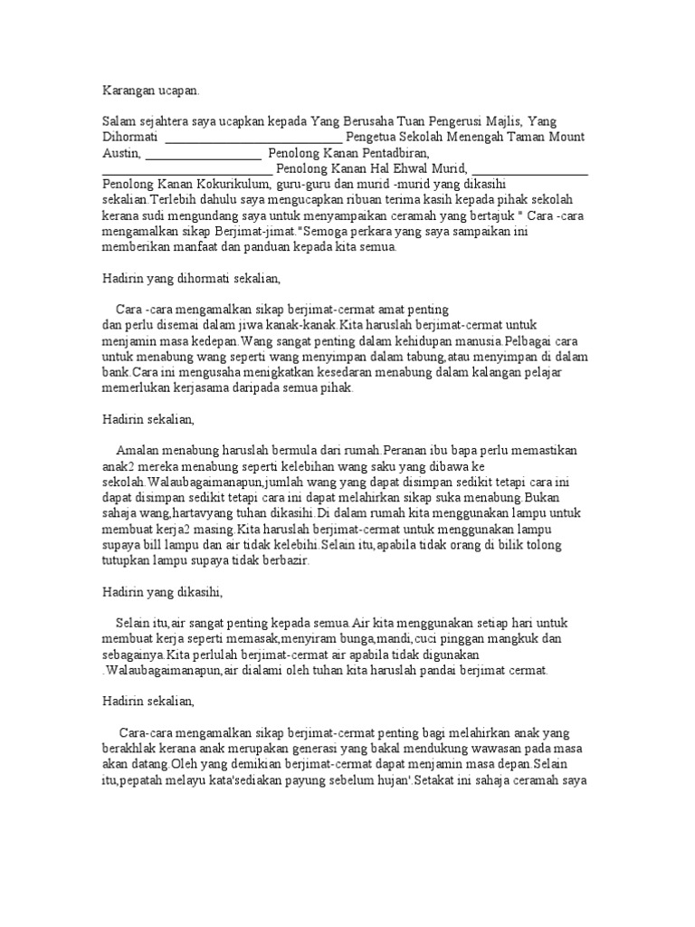 Contoh Karangan Spm Amalan Berjimat Cermat