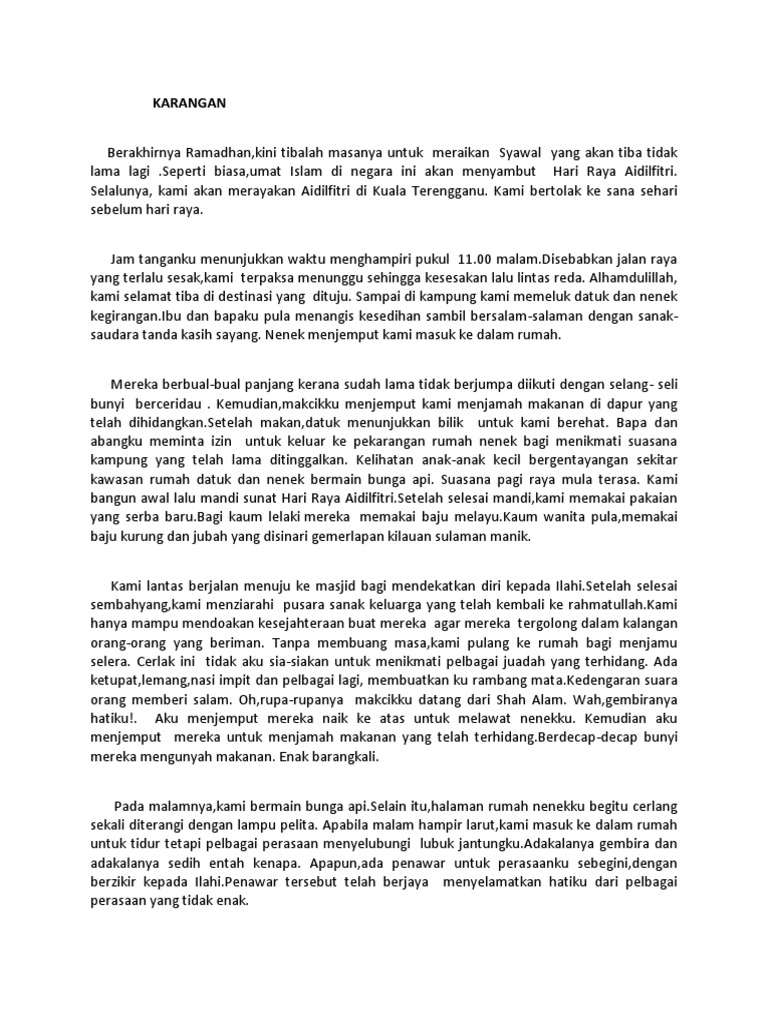 Contoh Karangan Sambutan Hari Raya Aidilfitri Upsr