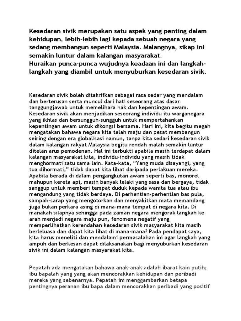 201624253 Kesedaran Sivik Merupakan Satu Aspek Yang Penting Dalam Kehidupan Karangan 2 Doc