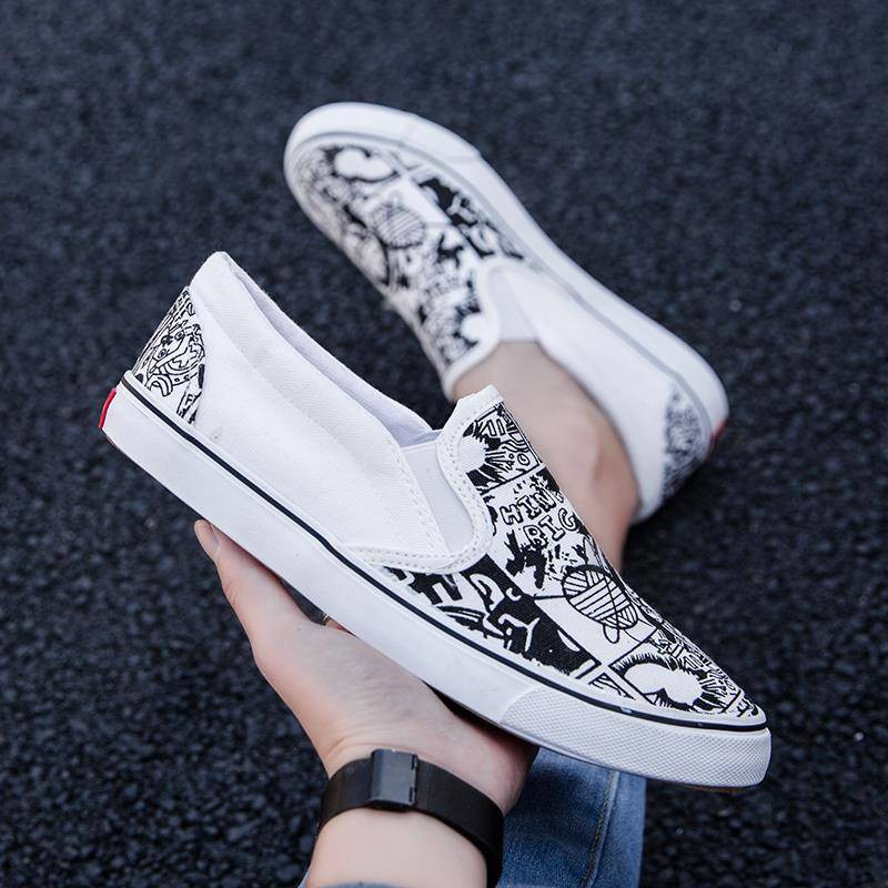 Kasut Vans Anime Kasut Kanvas Malas Trend Lelaki Yang Dilukis Dengan Tangan Bahagian Tipis Street Shot Pasang Kasut Grafiti One Piece Shoes One Pedal Men S Shoes Shopee Malaysia