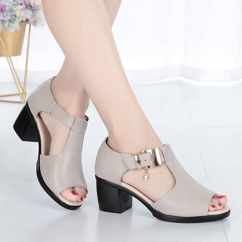 Bata Ready Stock Kasut Perempuan Hot Sandal Mulut Ikan Wanita Musim Semi Dan Musim Panas Baru Wanita Rom Kasut Tumit Tebal Tumit Tengah Tebal Wanita Tebal Kasut Ibu Separuh Baya Shopee Malaysia