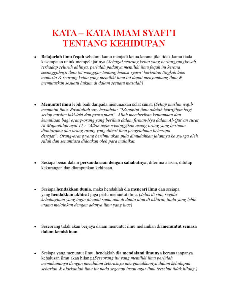 Smk Kuala Telemong Kata Kata Mutiara Imam Syafie Tentang Kehidupan