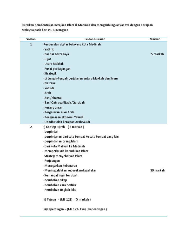 Huraikan Pembentukan Kerajaan Islam Di Madinah Dan Menghubungkaitkannya Dengan Kerajaan Malaysia Pada Hari Ini