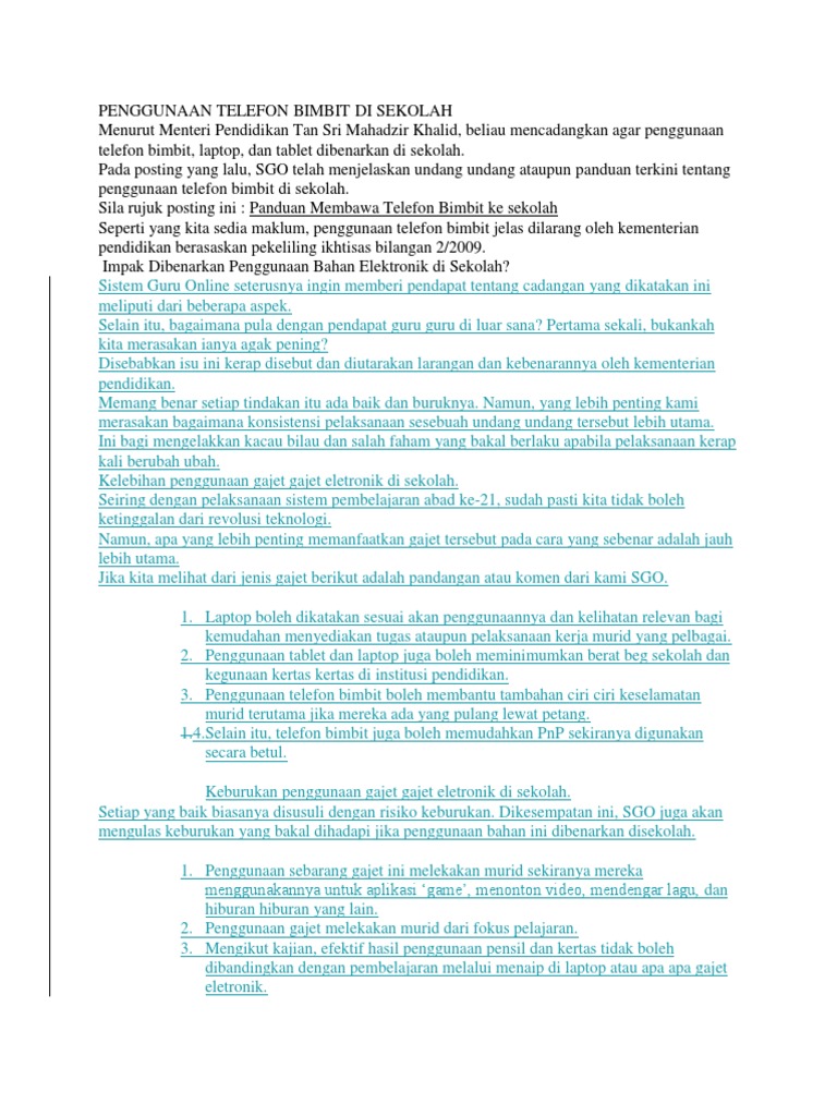 Kebaikan Dan Keburukan Menggunakan Telefon Bimbit Ke Sekolah