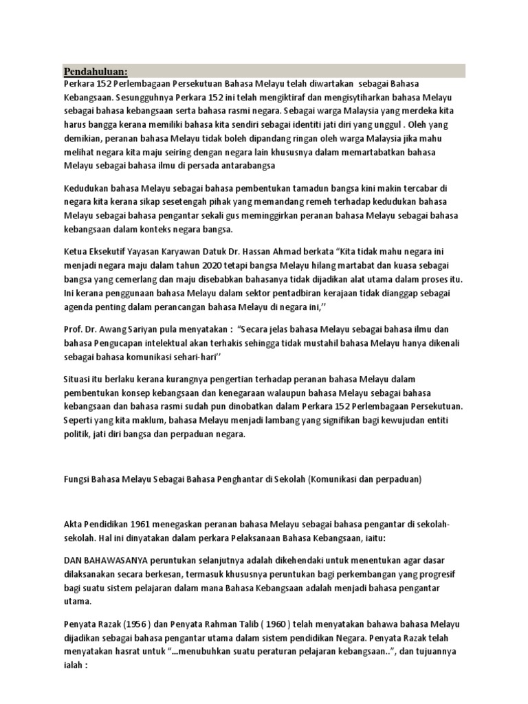 Pdf Kedudukan Bahasa Melayu Dalam Perlembagaan Serta Cabaran Masa Lalu Dan Masa Kini