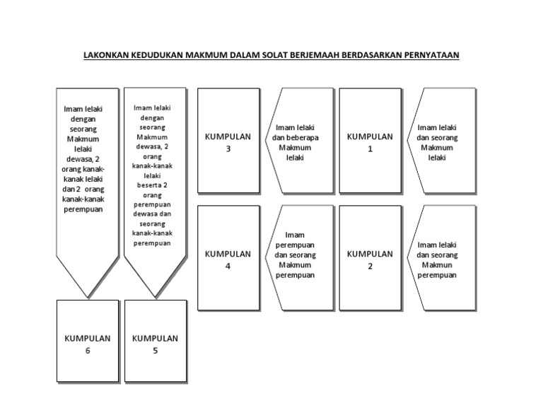Lakonkan Kedudukan Makmum Dalam Solat Berjemaah Berdasarkan Pernyataan