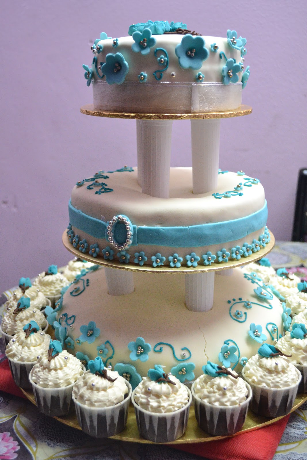 Meh La Singgah Sat Kek Fondant 3 Tingkat Tema Turguiose C W 20pcs Cupcake Tempahan Dari Anak Saudara 29sept12