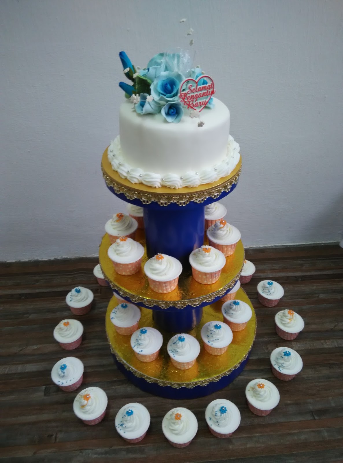 Bakecrazy Corner Kek Kahwin Tema Biru 2 Tingkat Dan Cupcake
