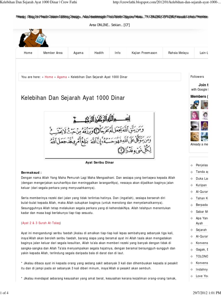 Dewa Copy Paste Kelebihan Dan Hikmat Ayat Seribu Dinar