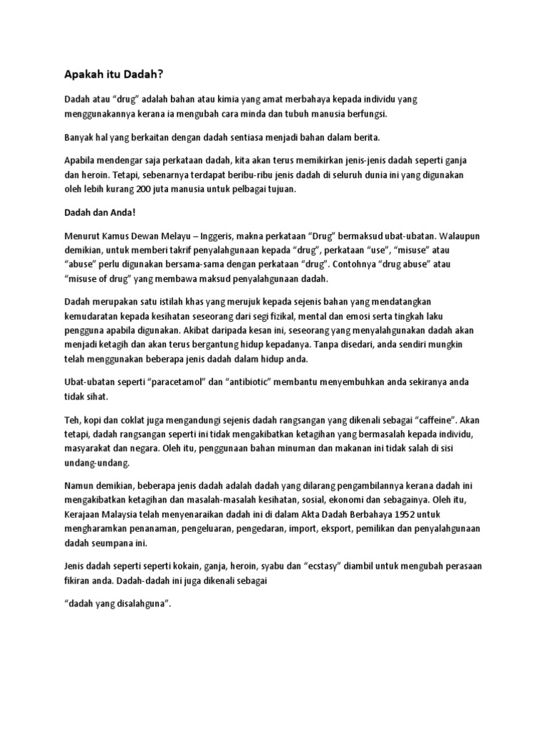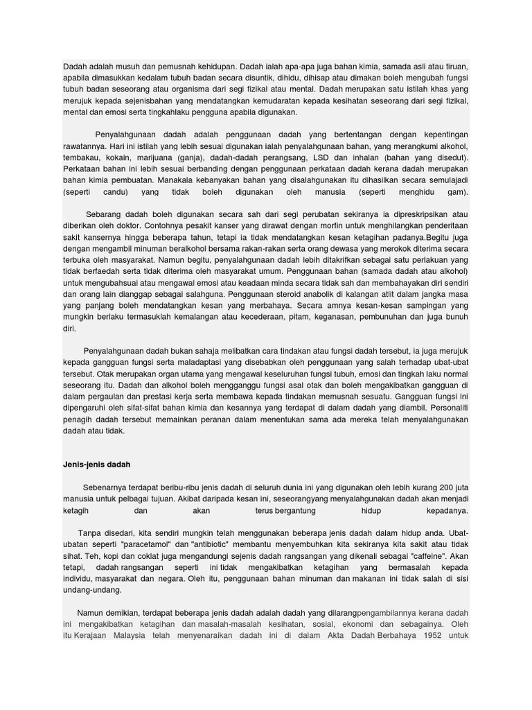 Dadah Adalah Musuh Dan Pemusnah Kehidupan Docx