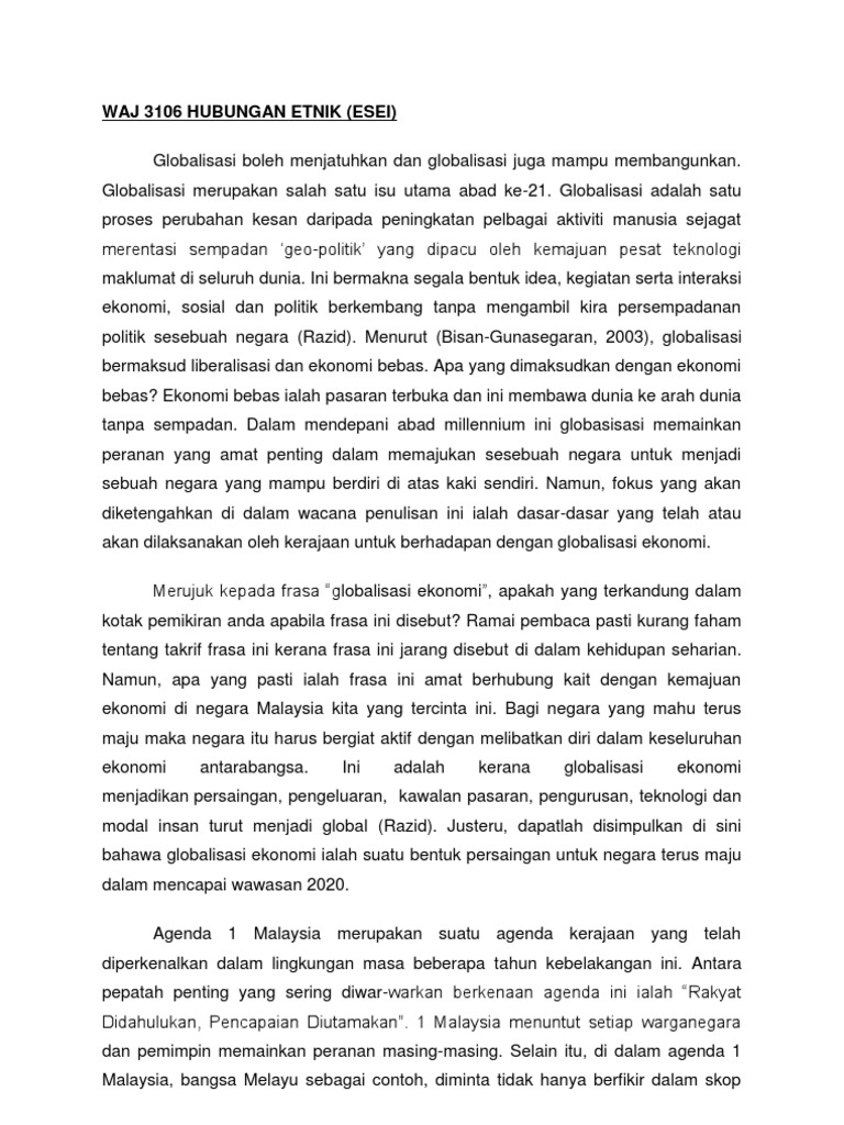 Waj 3106 Hubungan Etnik Esei 3000 Words