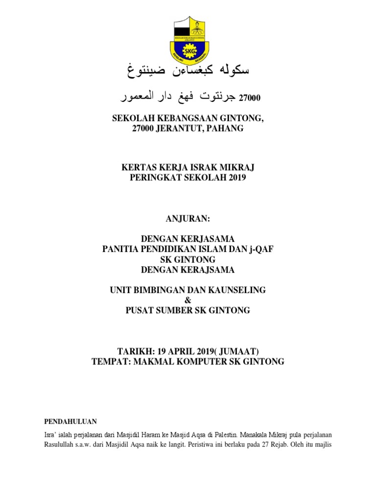 Kertas Kerja Isra Mikraj 2019 Sk Gintong Uploaded By Surayawati Abu Bakar