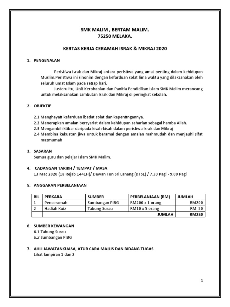 Kertas Kerja Sambutan Israk Mikraj Pdf