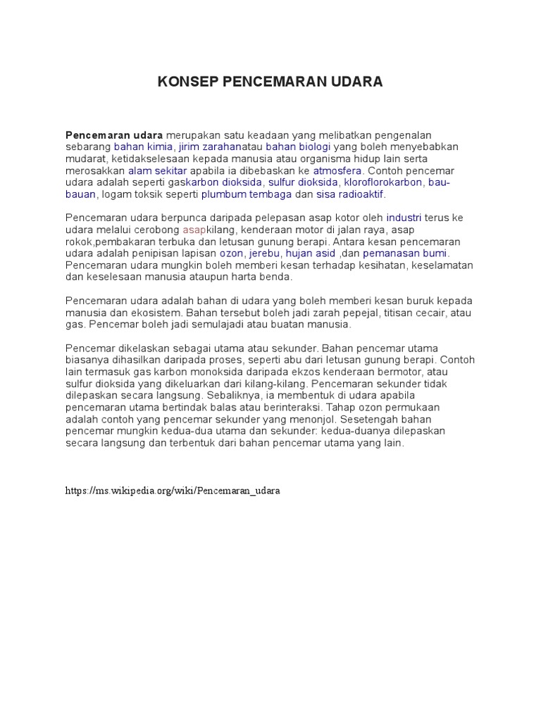 Konsep Pencemaran Udara Pencemaran Udara Merupakan Satu Keadaan Yang Melibatkan Pengenalan