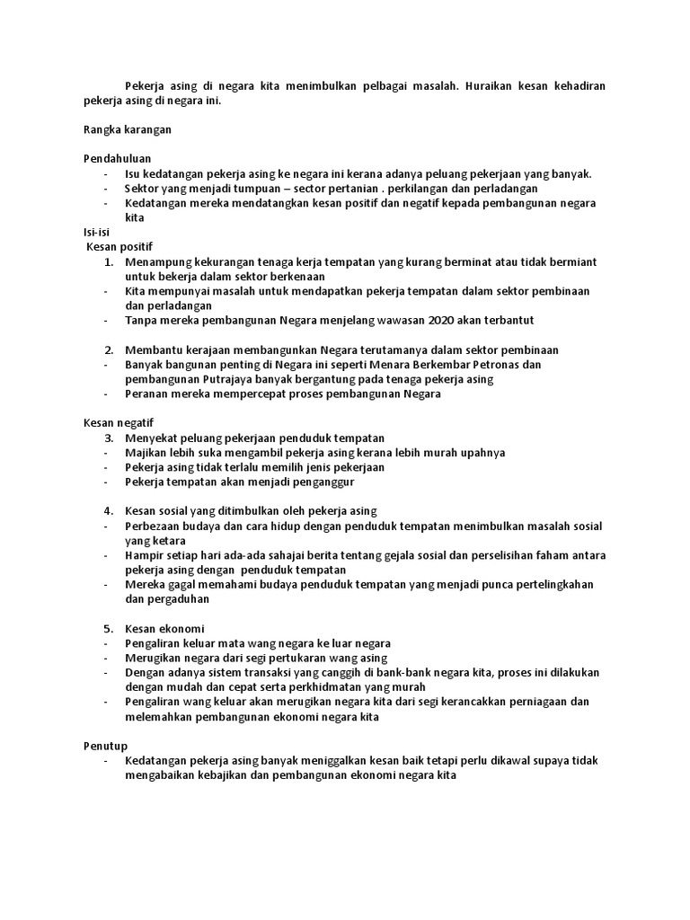 Pekerja Asing Di Negara Kita Menimbulkan Pelbagai Masalah Docx