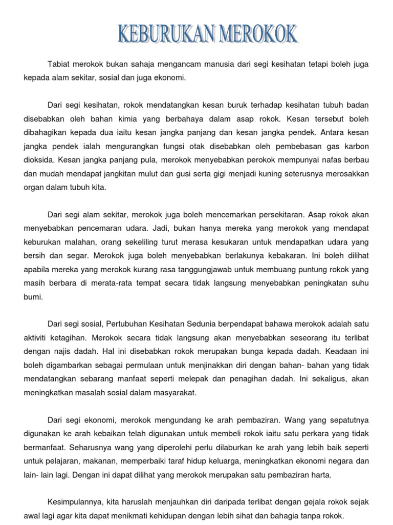 Kesan Buruk Merokok Terhadap Individu Dan Masyarakat