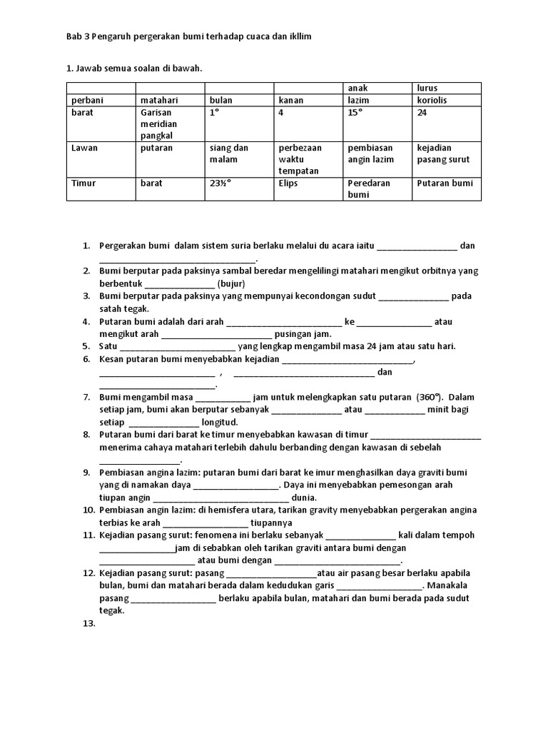 Latihan Geografi Pengaruh Pergerakan Bumi Terhadap Cuaca Dan Iklim Ting 2