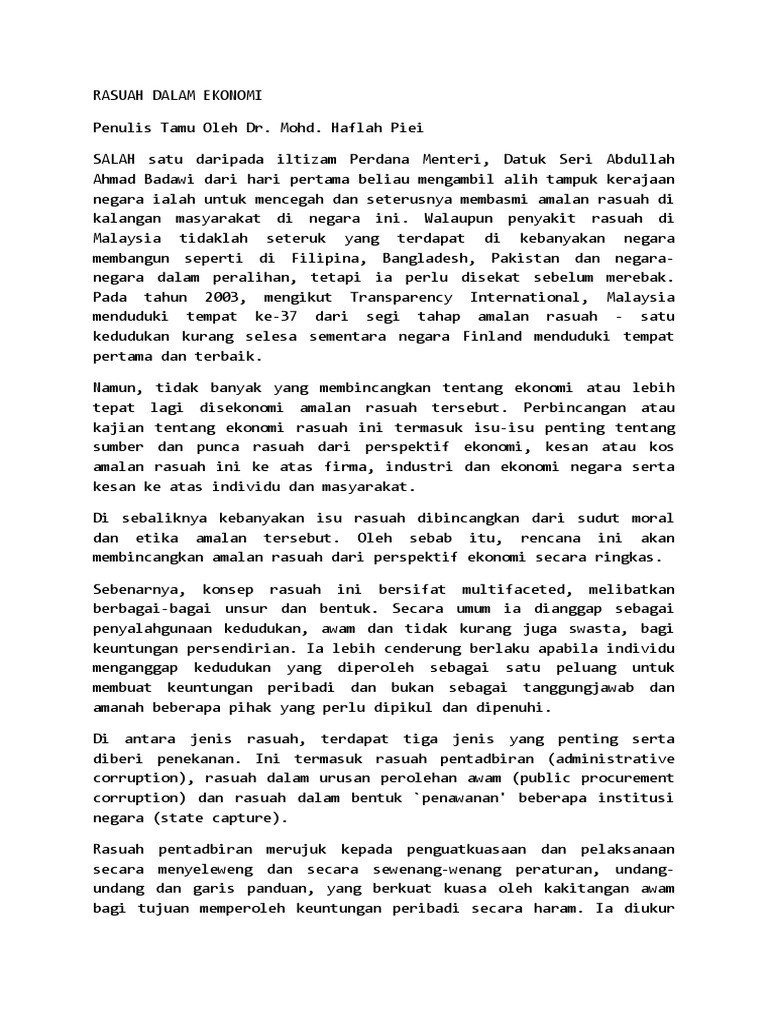 Rasuah Dalam Ekonomi Docx