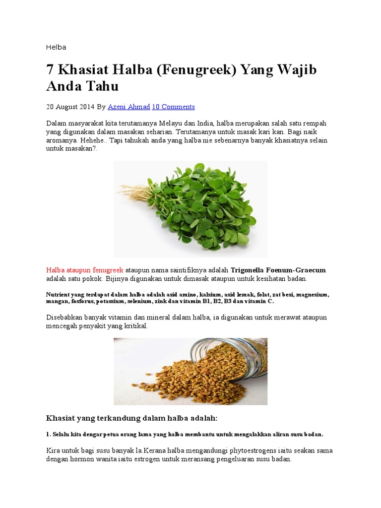 Khasiat Halba Untuk Kesihatan