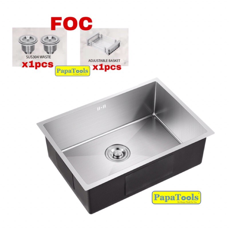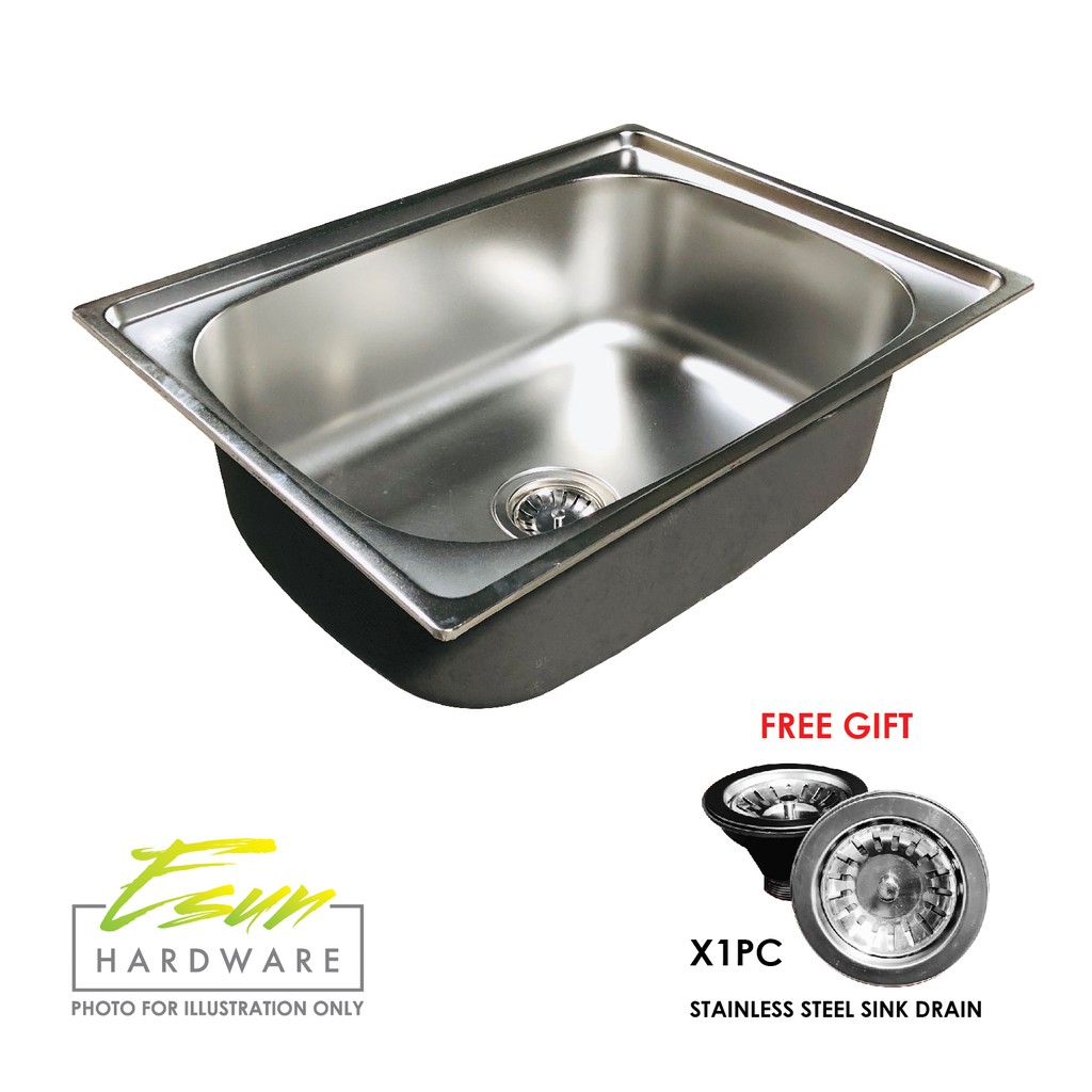 Ready Stock 600x450x170mm Sus304 Stainless Steel Single Bowl Kitchen Sink Shopee Malaysia