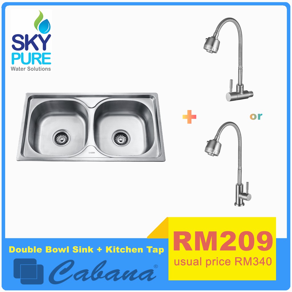 Cabana Cks7843 Double Bowl Kitchen Sink C W Ss304 Kitchen Tap Wall Or Pillar Mounted Shopee Malaysia