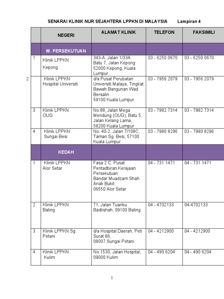 1 pejabat lppkn negeri. Klinik nur sejahtera shah alam. Lppkn shah alam seksyen 16 44m. Kompleks kasih keluarga jalan sempadan 16 7 peti surat 7080 40702 shah alam selangor.