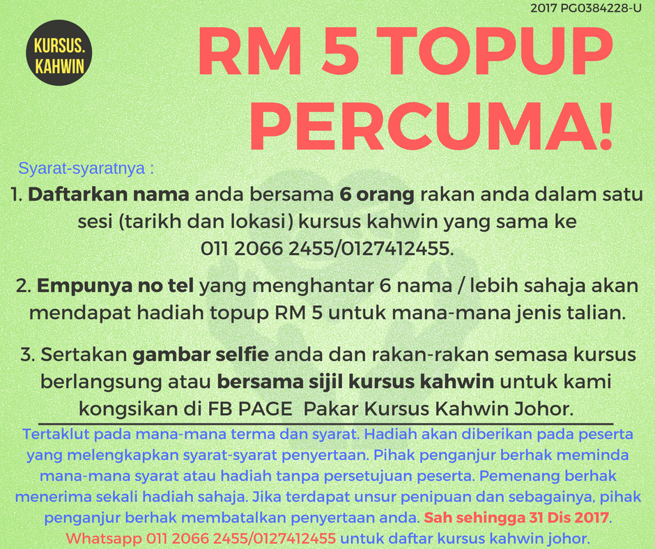 Kursus kahwin johor 2017. 012 2220550 013 7790977. Raja batu pahat 24 25 februari 2017 jumaat sabtu 24 25 mac 2017 jumaat sabtu 21 22 april 2017 jumaat sabtu untuk tempahan sms watsapp. Kursus kahwin johor bahru 2017. Untuk makluman setelah mendapatkan kebenaran daripada jabatan agama islam negeri johor kami akan menganjurkan kursus pra perkahwinan bermula 27 jun 2020 menerusi kursus dalam talian online mengunakan aplikasi zoom cloud meeting.