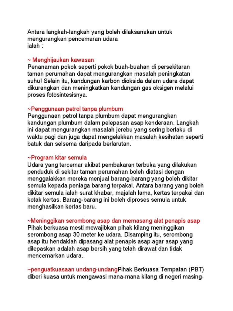 Langkah Langkah Yang Perlu Diambil Bagi Mengelakkan Masalah Jerebu Daripada Berlaku