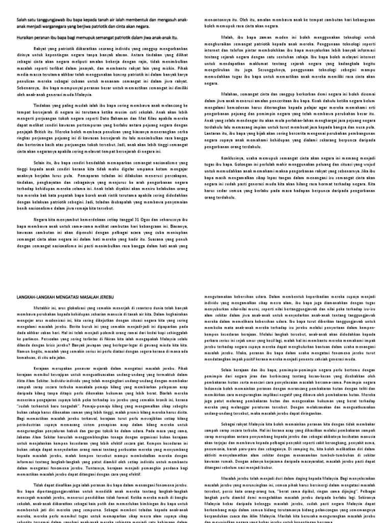 Sekiranya malaysia bebas daripada belenggu masalah jerebu sudah pasti negara malaysia dapat berkembang maju dalam semua bidang terutamanya bidang pelancongan yang sememangnya berpandukan cuaca dan iklim malaysia. Jika masih ada yang ingat pada tanggal 19 september 1997 perdana menteri tun dr mahathir mohamad telah mengisytiharkan darurat jerebu di sarawak apabila bacaan indeks pencemaran udara ipu melebihi 650 paras berbahaya paling tinggi dalam sejarah. Pelbagai langkah perlu diambil demi mengelakkan masalah jerebu daripada berlaku lagi. Sekiranya malaysia bebas daripada belenggu masalah jerebu sudah pasti negara malaysia dapat berkembang maju dalam semua bidang terutamanya bidang pelancongan yang sememangnya.