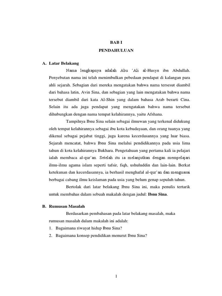 Beliau mempunyai nama lengkap abu ali al husain. Sharaf al mulk hujjat al haq sheikh al rayees lahir. Ibnu sina merupakan seorang filsuf ilmuwan dokter dan penulis aktif yang lahir di zaman keemasan peradaban islam pada zaman tersebut ilmuwan ilmuwan muslim banyak menerjemahkan teks ilmu pengetahuan dari yunani persia dan india. Ibnu sina siapa yang tidak kenal dengan beliau nama beliau terkenal sampai di barat dalam kesempatan ini saya ingin menceritakan tentang latar belakang beliau sebagai tokoh islam menuntut ilmu itu adalah difardukan oleh semua orang islam manusia yang tidak menuntut ilmu ia akan menjadi jahil atau bahasa kasarnya ialah bodoh mereka tidak dapat membezakan mana satu yang betul dan yang mana satu salah.