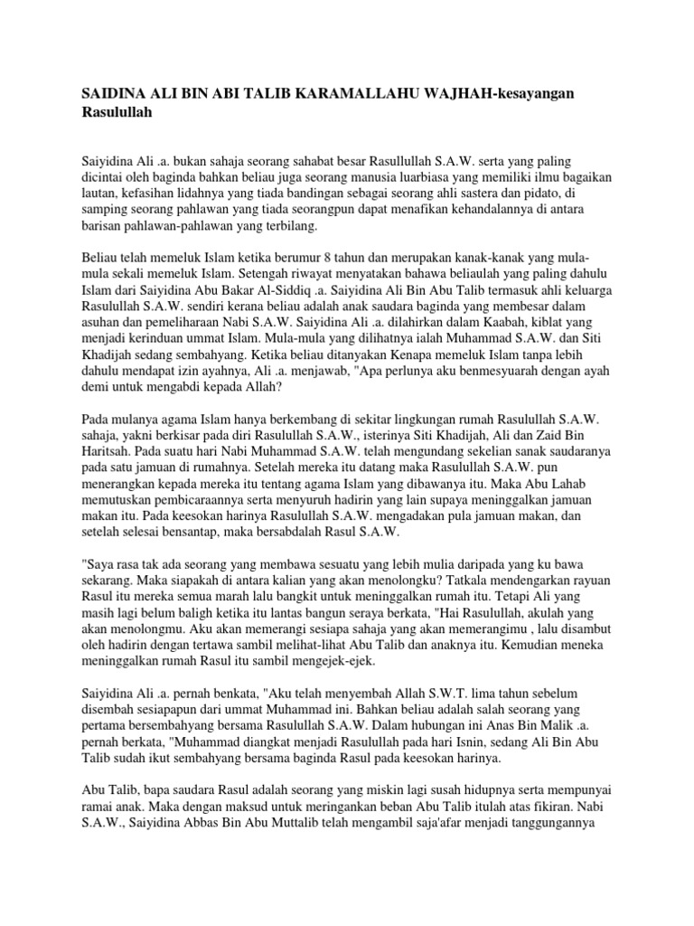 Biografi Ali Bin Abi Thalib Lengkap Dari Masa Kecil Hingga Menjadi Khalifah Islami Dot Co
