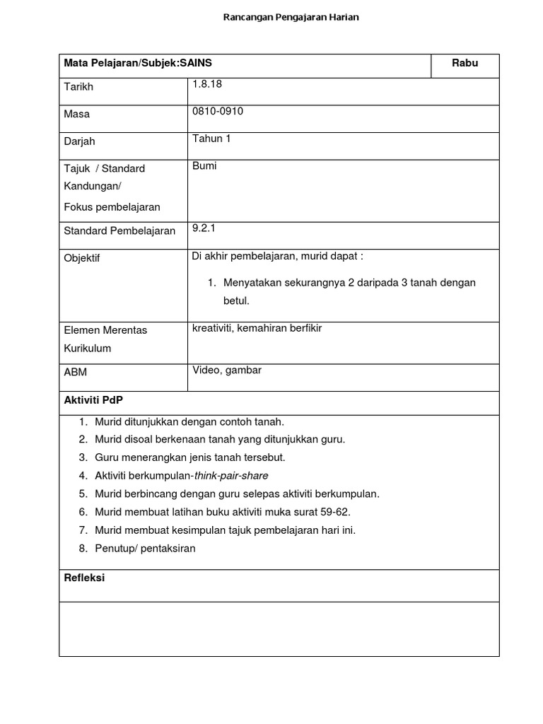 Dskp Sains Kssr Tahun 1 Semakan