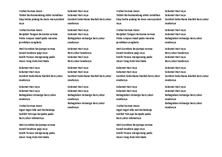 Berikut merupakan rangkap awal untuk lirik lagu ini wahai semua insan takbir berkumandang akhir ramdhan siap sedia pulang ke desa menyambut raya. Lirik lagu bersyukur seadanya hael husaini lirik lagu bersyukur seadanya hael husaini. Wahai semua insan takbir berkumandang akhir ramdhan siap sedia pulang ke desa menyambut raya. Buah tangan hael untuk hari raya kali ini menampilkan lagu baru untuk tahun ini 2019.