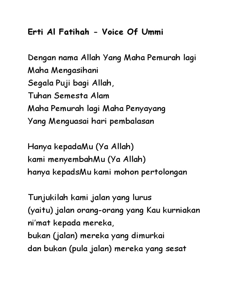 Arti Dari Surah Alfatihah Dengan Lagu Dan Music Youtube