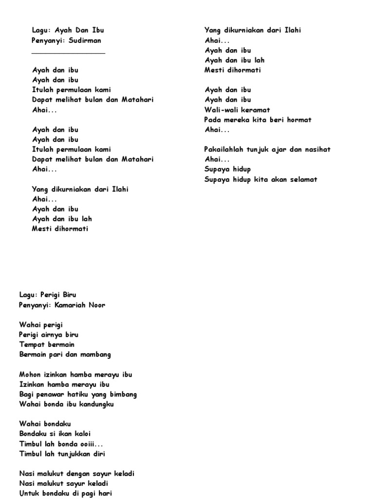 Lirik Lagu Anak Anak Oh Ibu Dan Ayah Obebiku