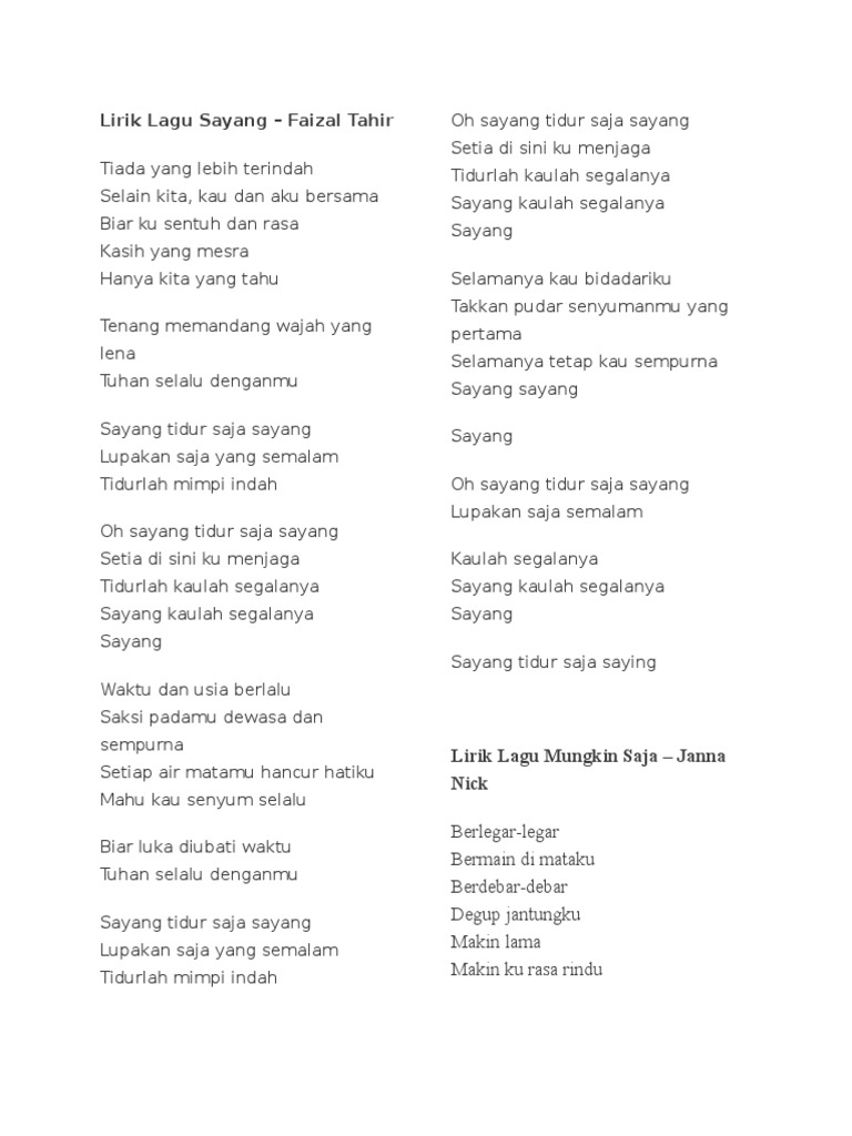 Wm malaysia all right reserved lirik tiada yang lebih. Lirik lagu sayang faizal tahir. Lirik lagu aduh aduh sayang deasy natalina ft. By admin posted on july 27 2015.