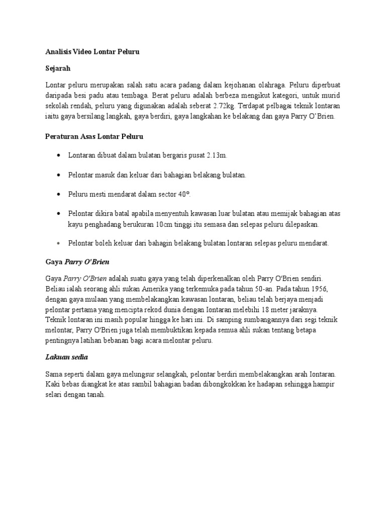 Acara ini disertai oleh lelaki dan wanita. Lontar peluru tulisan jawi.