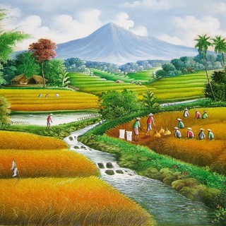 Gambar Lukisan Pemandangan Sawah Padi Pemandangan Lukisan Lanskap Lukisan