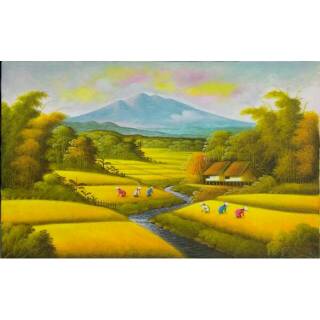 Lukisan Panen Padi Pemandangan Sawah Ukuran 135 X 85 Cm Shopee Indonesia