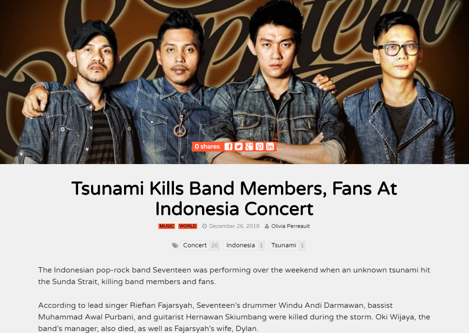 Tsunami Hits Stage During Indonesian Band Seventeen S Concert Kills 222 Pm Studio World Wide News