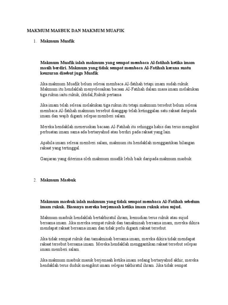 Muafik dan masbuk duration. Apa maksud masbuk dan muafik. Ustaz azhar idrus saya tak berapa faham ttg masbuk muafik duration. Ketika makmum mula mengikuti imam sekurang kurangnya imam sudah pun membaca al fatihah dan makmum tidak sempat menghabiskan bacaan al fatihah apabila imam rukuk.