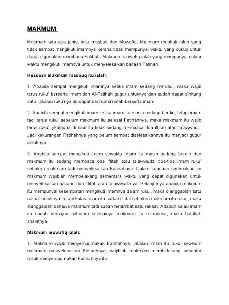 Tuliskan Pengertian Makmum Masbuk Dan Makmum Muwafiq Brainly Co Id