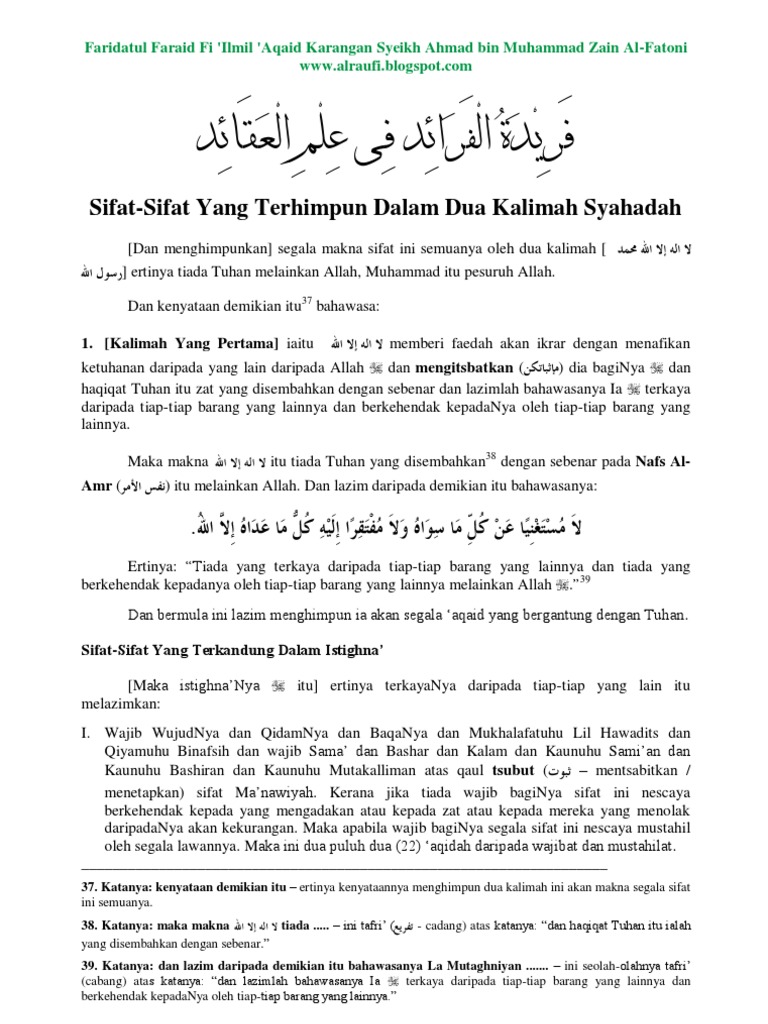 Makna dua kalimat syahadah. Lafaz dua kalimah syahadah tidak disyaratkan dengan lafaz yang dimulakan dengan lafaz ashhadu أشهد untuk mengesahkan kemasukan seseorang ke dalam agama islam. Dialah yang berhak disembah dan segala yang disembah selain allah adalah salah dan palsu. Ini merupakan fakta yang diketahui umum.