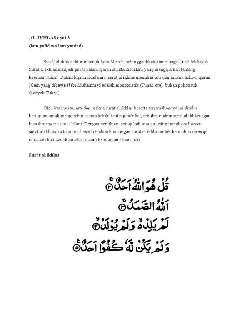 Isi Kandungan Al Qur An Surat Al Ikhlas Bacaan Madani Bacaan Islami Dan Bacaan Masyarakat Madani