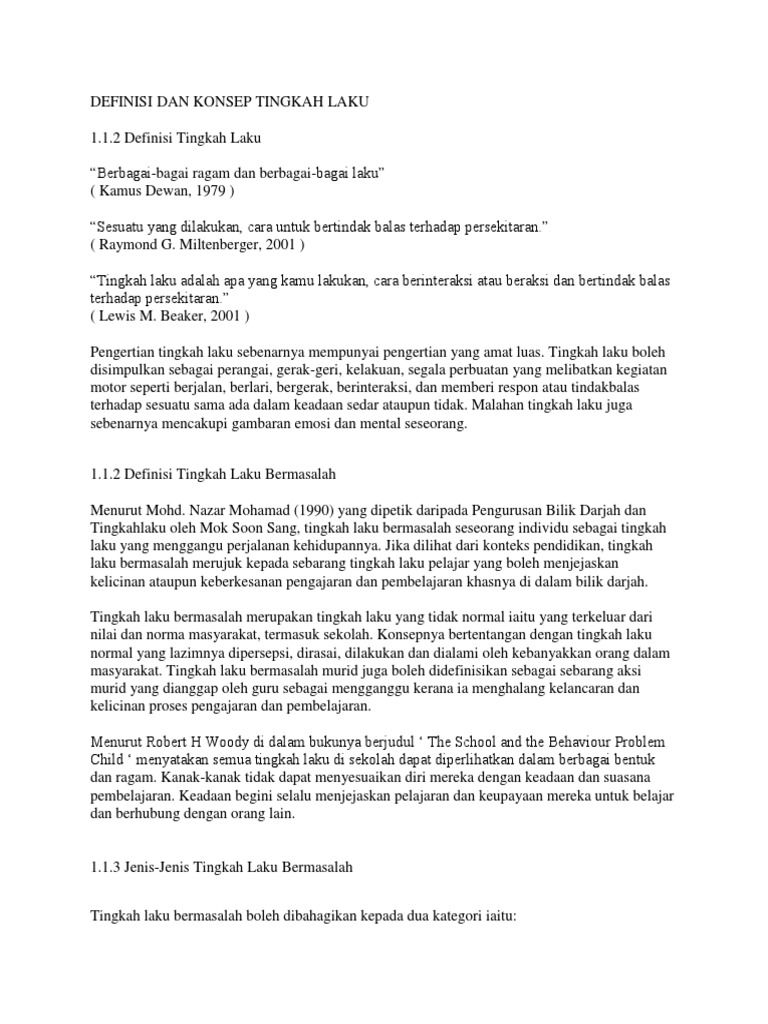 Definisi Dan Konsep Tingkah Laku